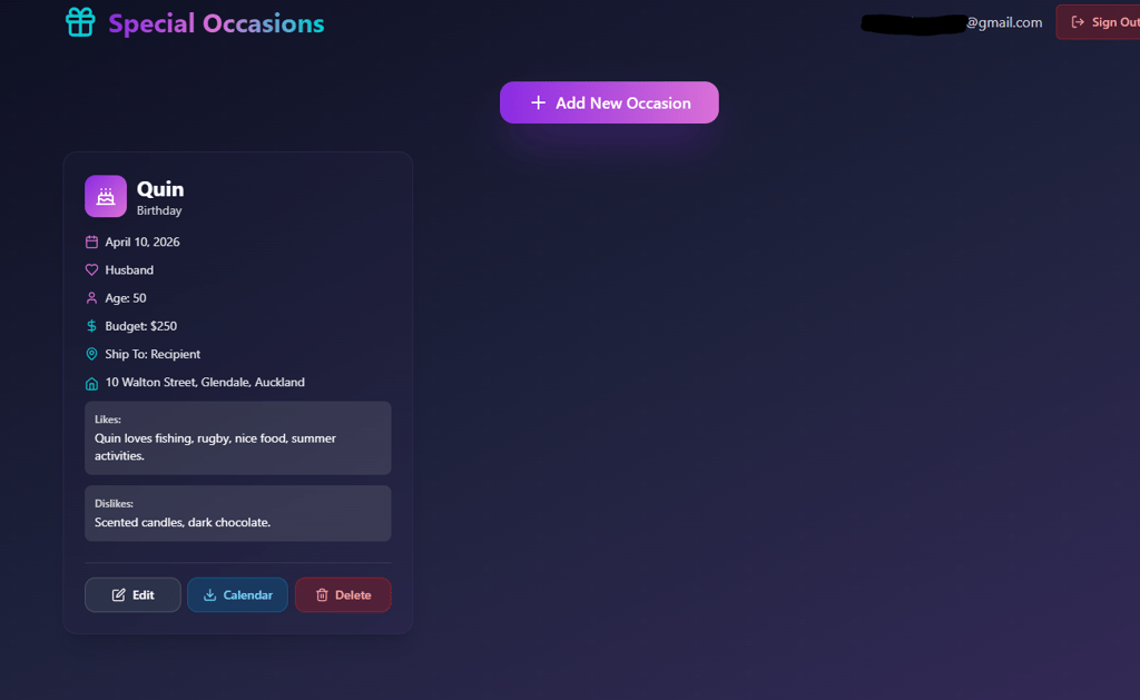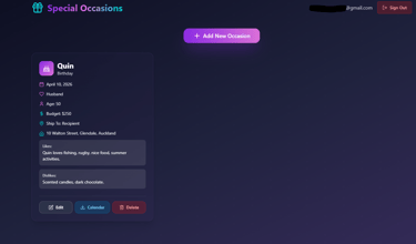 Never Forgetti helps you stay organised with unlimited reminders for birthdays and special occasions, delivering personalised alerts so you never miss a moment that matters to your loved ones.