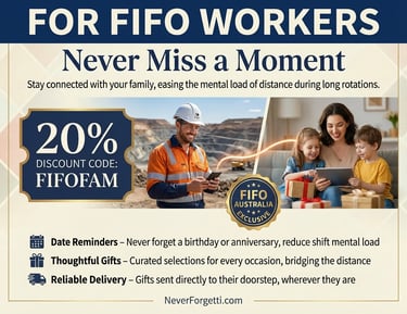 FIFO life asks a lot from you — long hours, long swings, and long stretches away from the people who matter most. Staying connected to family while you’re away is one of the biggest challenges, and even the small things, like remembering birthdays or organising gifts, can feel impossible when you're on site.